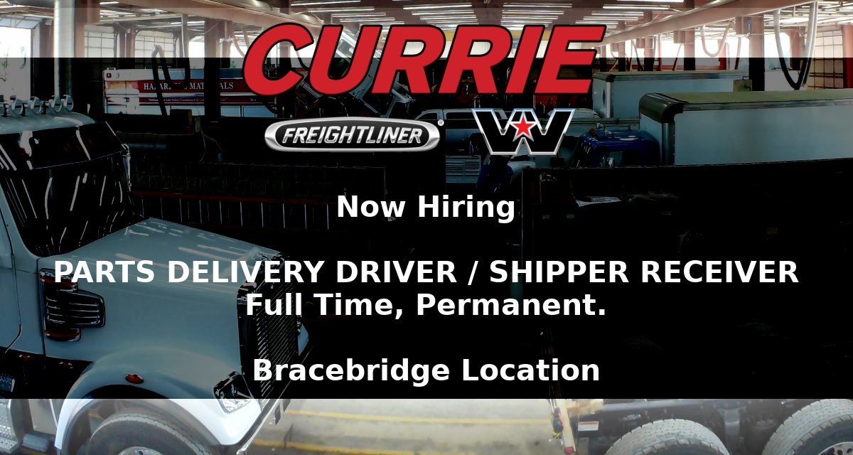 Currie Truck Centre On Twitter Now Hiring Full Time Parts Delivery Driver Shipper Receiver Job At Our Bracebridge Location For More Info Or To Apply Please Visit Https T Co Kfmtrmfnqc Https T Co 8wlrrpq1m7 Twitter
